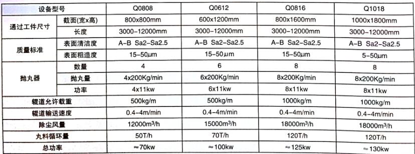 本系列設(shè)備以貫穿清理室的機動輥道為工件的運載裝置,工件在輥道上前進的同時接收來自不同方位鋼丸的拋射清理,設(shè)備采用連續(xù)通過式作業(yè)方式,廣泛應(yīng)用于鋼結(jié)構(gòu)、石化、起重機械等機械行業(yè)的結(jié)構(gòu)件的拋丸清理。