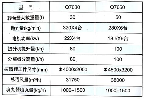 本機以拋丸清理為主,并有能升降的噴丸機構,對工件內腔補充清理,適用于水泵、汽輪機、機床、電機、化工機械、建筑機械等行業中大型鑄、鍛、焊接件的表面清理和強化。
